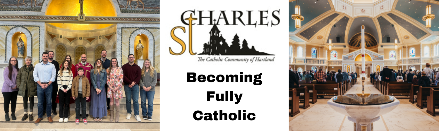 Becoming Fully Catholic is how St. Charles implements the Rite of Christian Initiation of Adults, a process through which unbaptized men and women and those unbaptized children who have reached the age of reason around age 7, enter the Catholic Church. It includes several stages marked by a deepening relationship with God, study, prayer, community, and celebration of rites at Mass. Participants in this journey are known as seekers, catechumens, and elect after participation in certain rites of the Church.